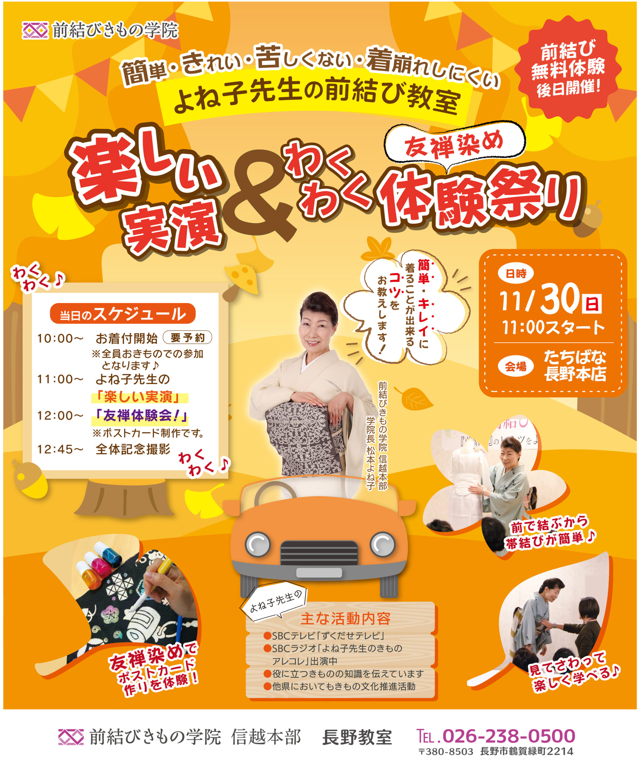 楽しい実演&わくわく体験祭り~よね子先生の前結び教室~